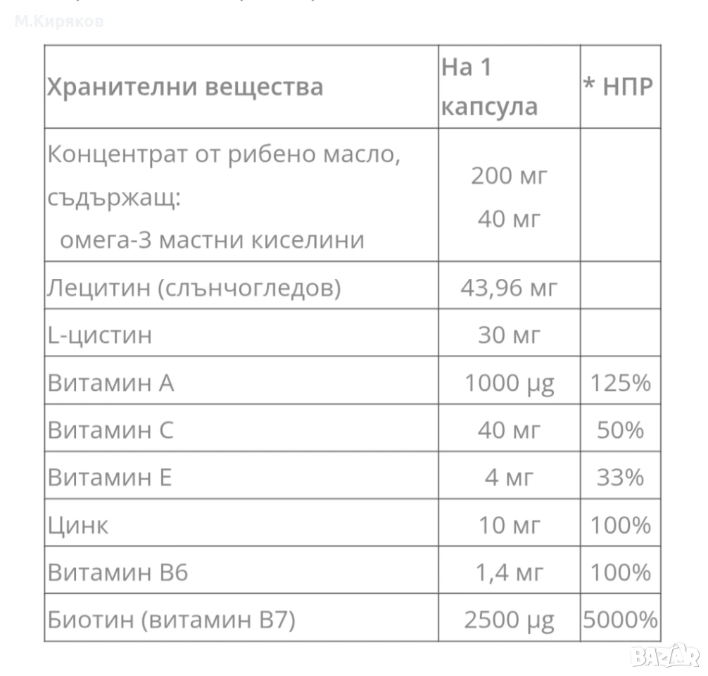 Опаковка: 31,70 г (60 капсули).