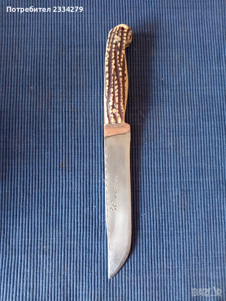 N:cтар нож със заобленo острие, сарашки занаядчийси нож за рязане на дебели кожи. Този вид нож е на инуитите наречен,,улу" за дране има маркиран надпис ,,STEEL"предполага се от началото ХХ век, размери 17х16см., цена 25€.;