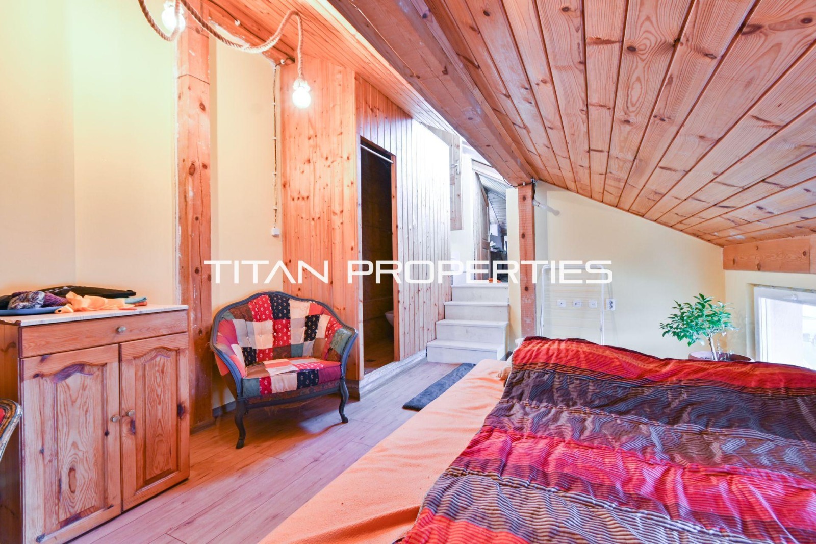 Титан Пропъртис - офис Хиподрума с радост предлага на Вашето внимание нова двуетажна къща в кв. Симеоново, София. Общата площ от 300 кв.м. се разпределя в няколко нива: в сутерена са котелно помещение, склад и завършена сауна; на първия етаж е търговска зона с два склада, два санитарни възела, коридор и вътрешно стълбище с отделно входно предверие; на втория етаж са светъл хол с кухненски бокс, две бани с тоалетни, голям балкон и спалня; в подпокривното пространство има спалня, баня и кухненски бокс, свързани с балкон. Къщата е обзаведена, отоплява се на газ и разполага с гараж.
