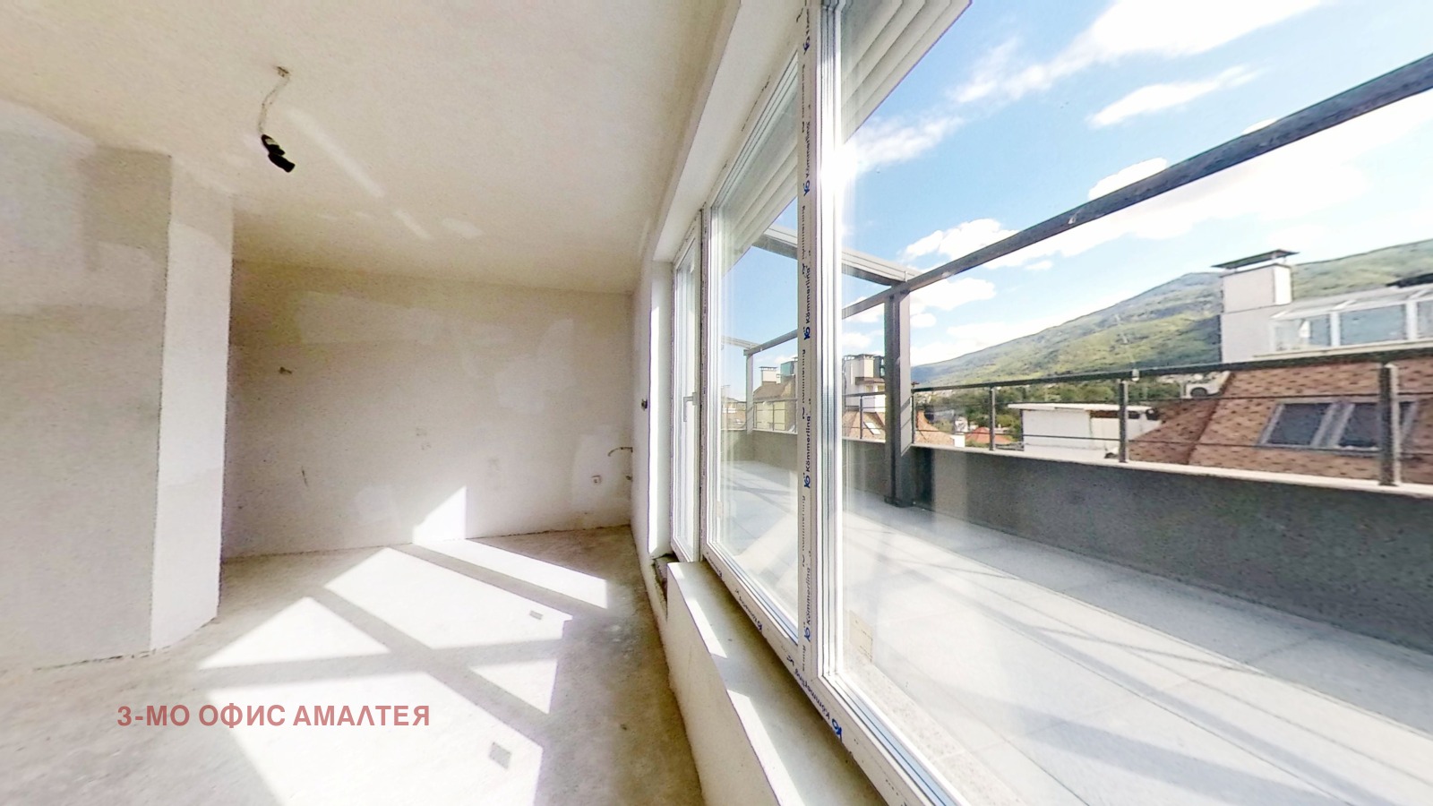 3mo Амалтея предлага за продажба панорамен четиристаен апартамент в кв. Манастирски ливади. Апартаментът има следното разпределение: три спални с квадратури - 11 кв.м., 15 кв.м и голяма родителска спалня 28 кв.м., хол с кухненски бокс и трапезария 56 кв.м., две бани с тоалетна 3,6 кв.м. и 3,7 кв.м., голяма панорамна тераса. Застроена площ е 189 кв.м. Общите части са много малък процент и представляват 25 кв.м. Общата квадратура е 214 кв.м. От терасите на апартамента се откриват гледки към Витоша и София. Блокът е с красиви общи части. Издаден е Акт 16 и Разрешение за ползване. Имотът е статут на ателие за живеене.