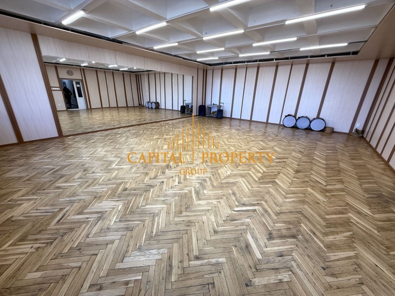 Намира се на 2 етаж, и представлява 4 помещения + санитарен възел с чиста застроена площ от 152м2. В момента се използва като зала за спорт и танци, като залата е със светла площ около 80 м2, обща съблекалня с площ около 25 м2, другите две помещения се използват в момента за складови цели и са с площ съответно от 10м2 и 15м2. При преустройство могат да бъдат обособени няколко малки офиса. Подовите настилки във всички помещения са естествен дървен паркет. Спортната зала е след основен ремонт - нова ПВЦ дограма, санирани външни стени с 10 см изолация, а отвътре всички стени са с 5 см изолация облечена с дървена ламперия. Отоплението е посредством електричество - колонен климатик марка GREE. Прекаран СОТ. Изложение - изток.