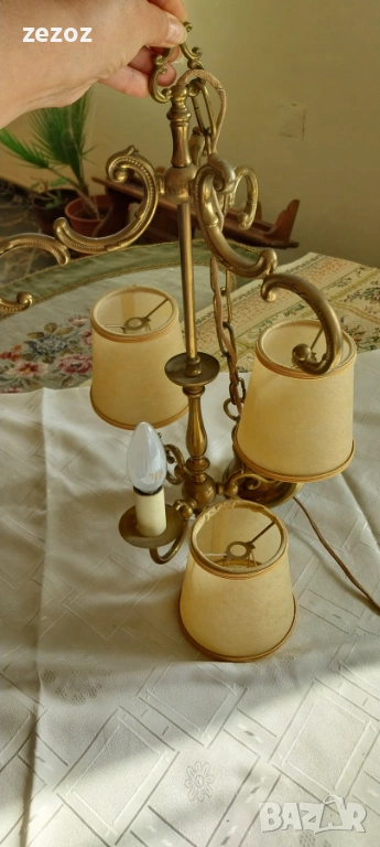 Не го лови магнит.Запазени плафончета.Препоръчителна смяна на окабеляване.Височина без верига-60см.