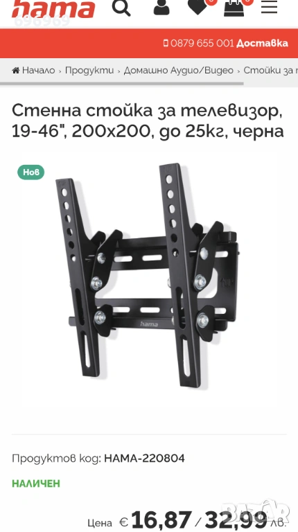 Стенна стойка за телевизор, 19-46", 200x200, до 25кг, снимка 1 - Стойки, 3D очила, аксесоари - 53028705 Стенна стойка за телевизор, 19-46", 200x200, до 25кг, снимка 2 - Стойки, 3D очила, аксесоари - 53028705 Стенна стойка за телевизор, 19-46", 200x200, до 25кг, снимка 3 - Стойки, 3D очила, аксесоари - 53028705 Стенна стойка за телевизор, 19-46", 200x200, до 25кг, снимка 4 - Стойки, 3D очила, аксесоари - 53028705 Стенна стойка за телевизор, 19-46", 200x200, до 25кг, снимка 5 - Стойки, 3D очила, аксесоари - 53028705 Стенна стойка за телевизор, 19-46", 200x200, до 25кг, снимка 6 - Стойки, 3D очила, аксесоари - 53028705 1/6
