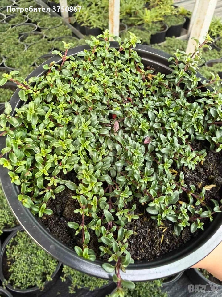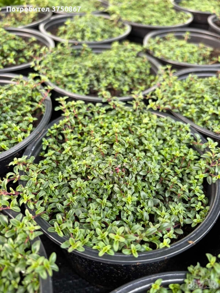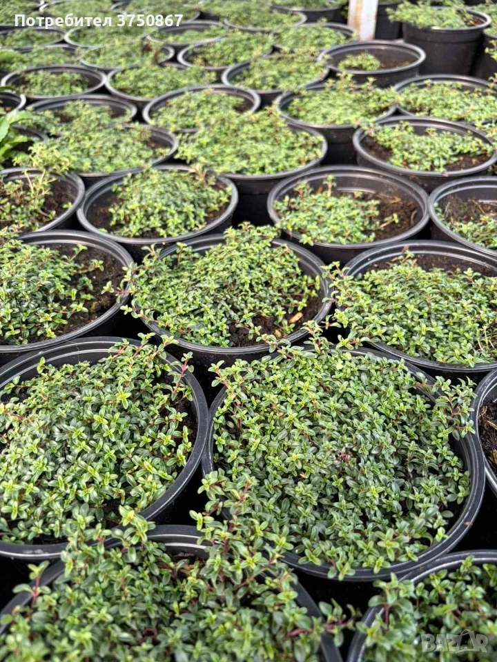 🌸🌿💜 Thymus vulgaris ‘Purple Beauty’ / Пълзяща мащерка Thymus vulgaris ‘Purple Beauty’ – изящен, ароматен сорт пълзяща мащерка, който ще внесе цвят и ухание във всяка градина. Образува гъст, вечнозелен килим от ситни листенца, а през лятото се обгръща с море от дребни пурпурни цветове, които привличат пчели и пеперуди. Предпочита слънчево място и добре дренирана почва, устойчива е на засушаване и студ. Подходяща е за алпинеуми, бордюри, между камъни, покриване на площи и саксии. Освен декоративната си стойност, мащерката е и ценна подправка с ароматни листа, които могат да се използват пресни или сушени. Тя е и лечебно растение, което притежава антисептични, противовъзпалителни, отхрачващи и спазмолитични свойства. 💜 Компактна, ароматна и неустоимо красива – Purple Beauty ще се превърне в жив килим от лилаво и зелено! 💜💜💜 Характеристики: Вид: Мащерка (Thymus vulgaris) Сорт: 'Purple Beauty' Външен вид: Нисък, силно декоративен храст достигащ височина 10-15 см, пълзящ Цвят: Виолетово-червени цветове Аромат: Ароматен, подходящ за подправка Приложения: Градинарство: Декоративна употреба. Подходяща е за алпинеуми, бордюри, между камъни, покриване на площи и саксии. Кулинария: Подправка за различни ястия. Медицина: Лечебно растение с антисептично, противовъзпалително и отхрачващо действие. Устойчивост: Силно зимоустойчив вид, издържа на ниски температури (до -23°C). Отгледани в работни саксии Ф 12. 👉👉👉 Цена - 3,07 €/бр (6,00 лв./бр.) 🚘📦🚘 Работим с куриерски фирма Еконт. За Варна може и лично предаване. 🩷 може да направите поръчка и на телефони: +359888873211 +359886771048 #мащерка #пълзящамащерка #почвопокривнамащерка #декоративнамащерка #ThymusvulgarisPurpleBeauty #студоустойчивицветя #многогодишницветя #почвопокривницветя #renisgardenscom