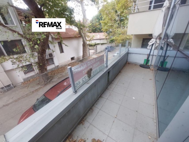 RE/MAX ексклузивно отдава офис в идеален център, намиращ се в реномирана офис сграда с денонощна охрана, видео наблюдение и контролиран достъп. Еностайният имот с кухенски бокс и комбиниран санитарен възел е с панорамни прозорци и голяма тераса. Сградата е с перфектни общи части, асансьор и портиер. Подходящ е и за жилищни нужди. Намира се в идеален център на метри от Дирекция на полицията и е с изложение към църквата Св. Богородица. Отдава се с едногодишен договор. Ключ в офиса! Огледи само в делнични дни! Моля изгледайте видеото!