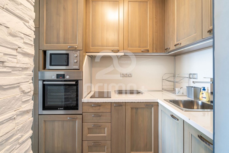 Обзаведен с внимание към всеки детайл, с поръчкови мебели и висок клас довършителни материали. Апартаментът е с източно изложение, отопление на ТЕЦ и допълнителен бойлер. Поставена е както вътрешна, така и външна изолация.