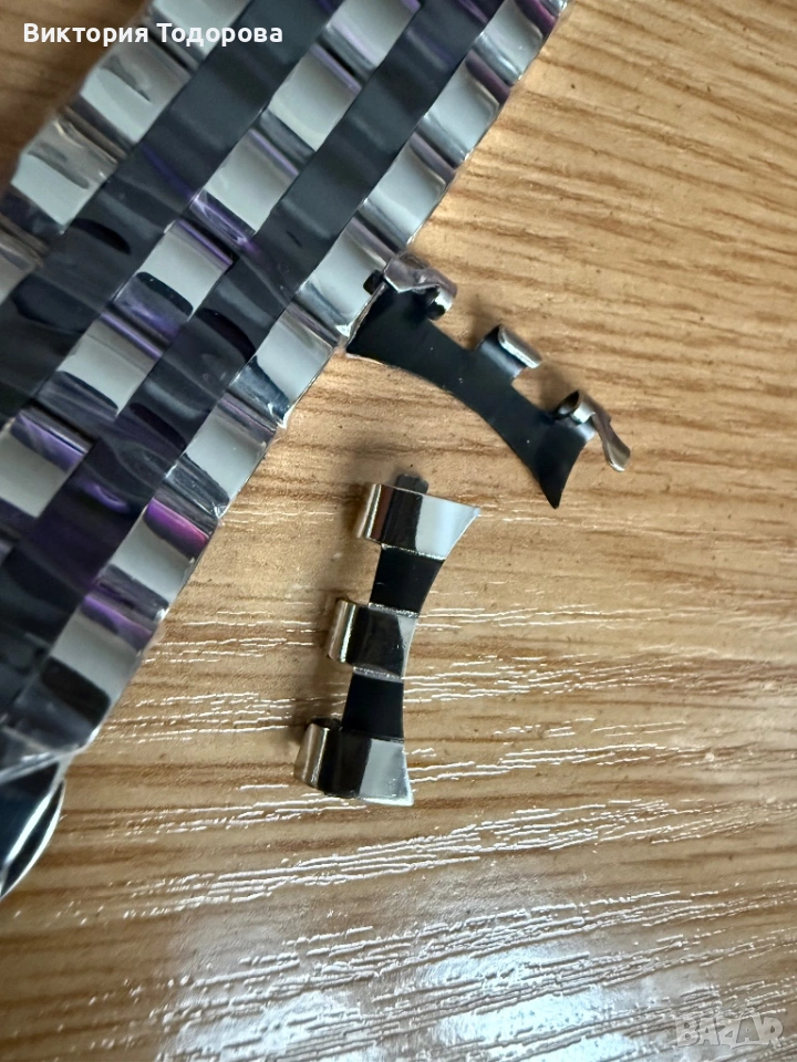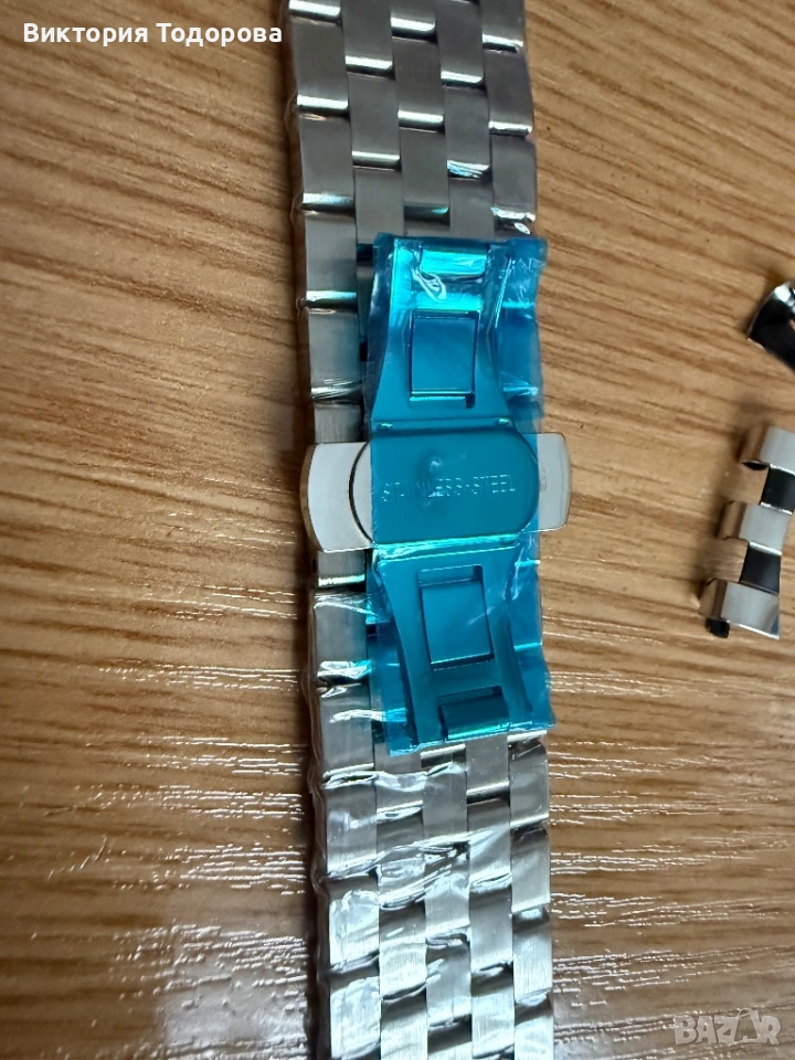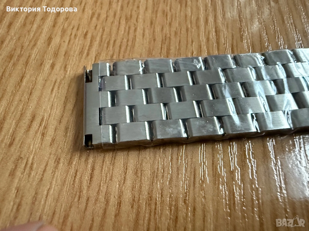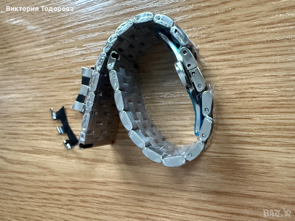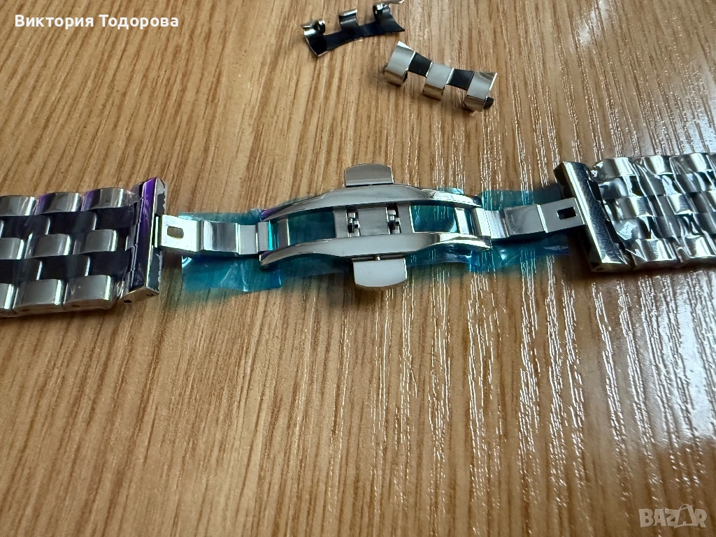 Здравейте! Предлагам солидна верижка 22 мм за часовник. Закопчаване тип Пеперуда. Има допълнителни накрайници. Нова не използвана със защитното фолио. Продава се на цената на която е закупена. Причината объркан размер от моя страна.