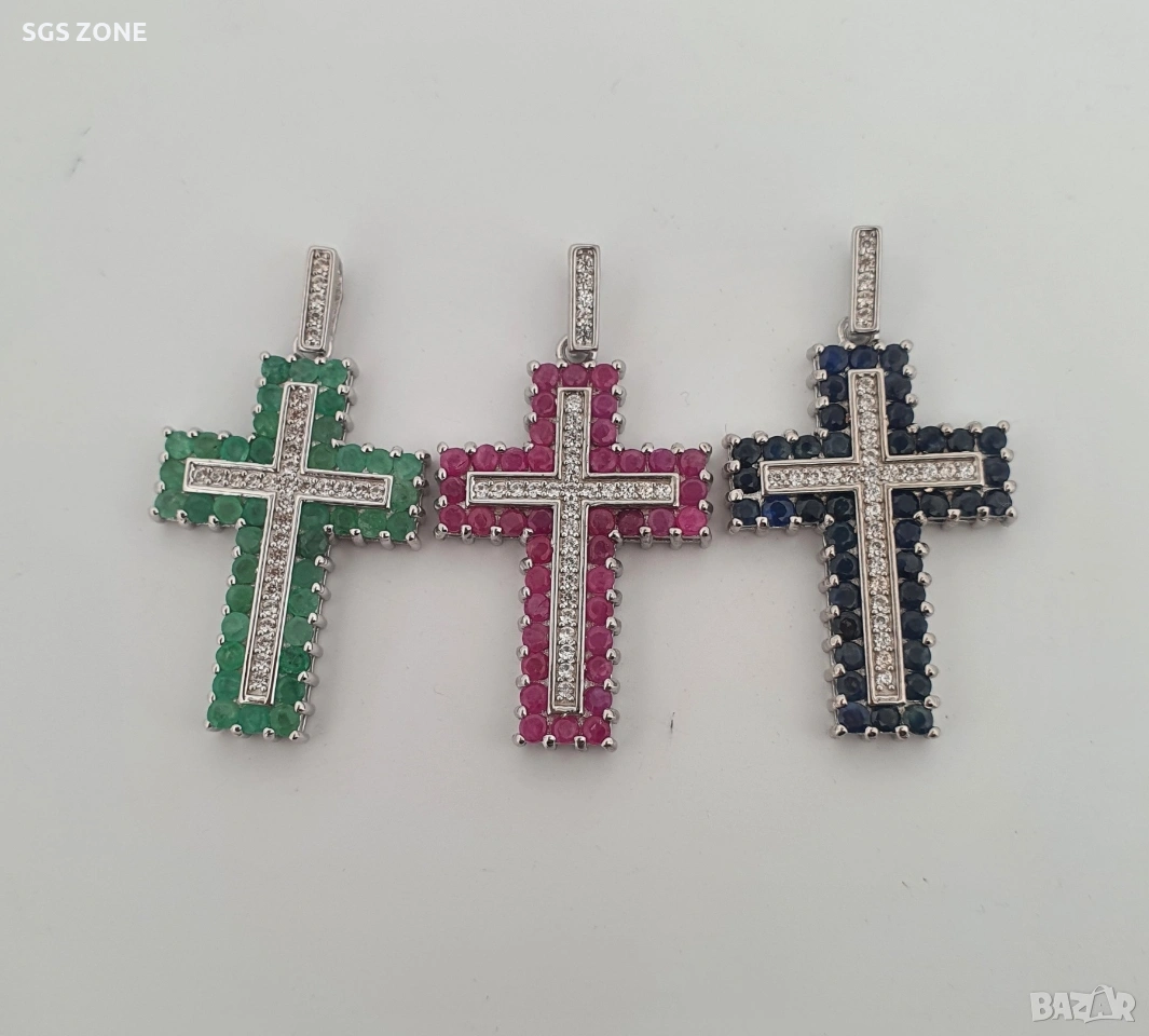 Сребърен кръст с рубин, изумруд или сапфир. Още снимки и видеа на продукта в Instagram и Facebook sgs.zone, уебсайт sgs.zone. Можем да изпратим допълнителна информация чрез Viber. Изпращане Speedy и Эконт. Шоурум в София, Дондуков, 53. Всички продукти са със сертификати и подаръчна кутия. Продукти имат допълнителни български маркировки