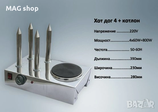 Професионална Машина за хотдог Уред Хот-дог хот дог 4 шишa и котлон