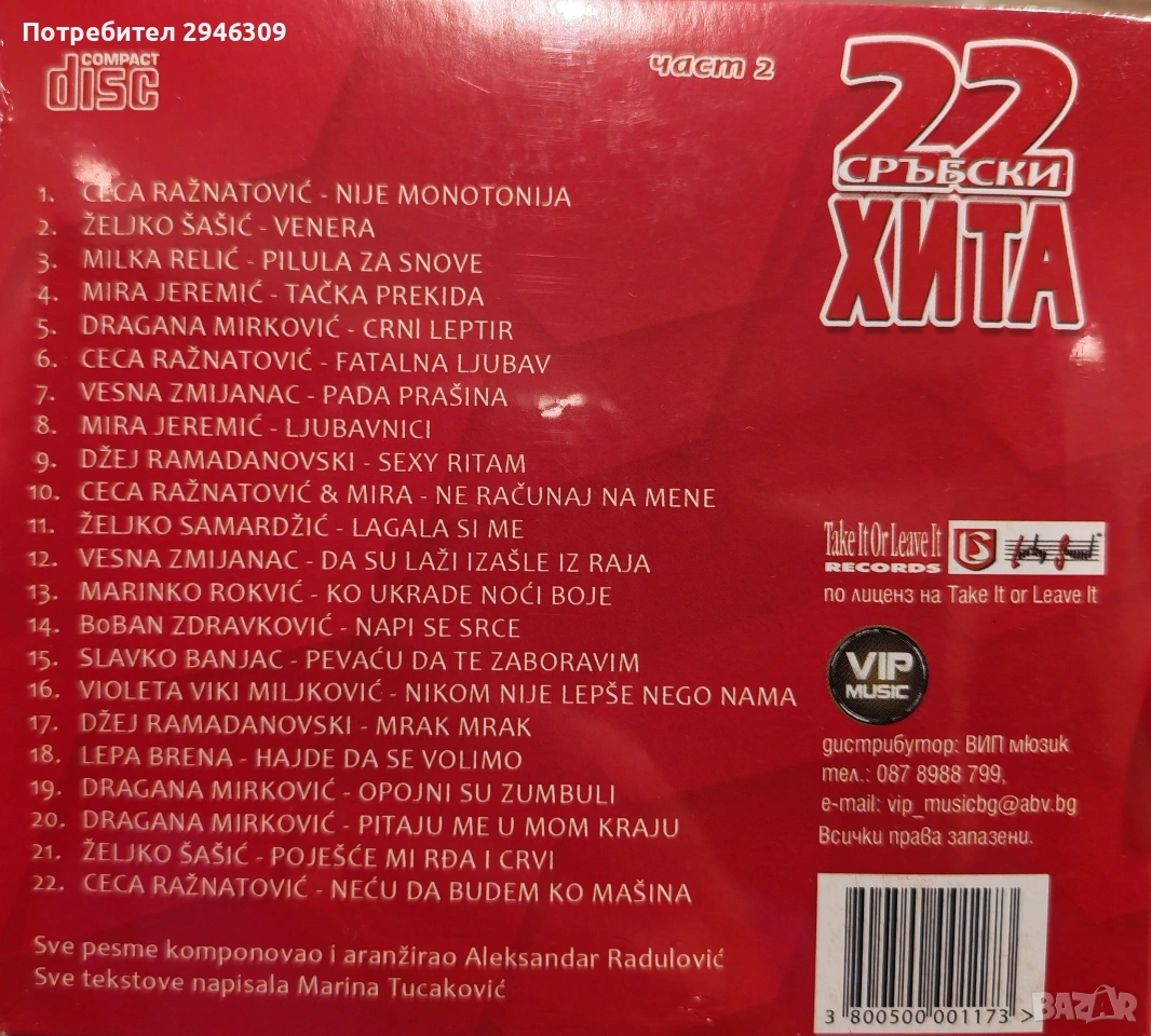 Сръбски Балади и 22 сръбски хита 1 и 2, снимка 1 - CD дискове - 53030062 Сръбски Балади и 22 сръбски хита 1 и 2, снимка 2 - CD дискове - 53030062 Сръбски Балади и 22 сръбски хита 1 и 2, снимка 3 - CD дискове - 53030062 Сръбски Балади и 22 сръбски хита 1 и 2, снимка 4 - CD дискове - 53030062 Сръбски Балади и 22 сръбски хита 1 и 2, снимка 5 - CD дискове - 53030062 Сръбски Балади и 22 сръбски хита 1 и 2, снимка 6 - CD дискове - 53030062 1/6
