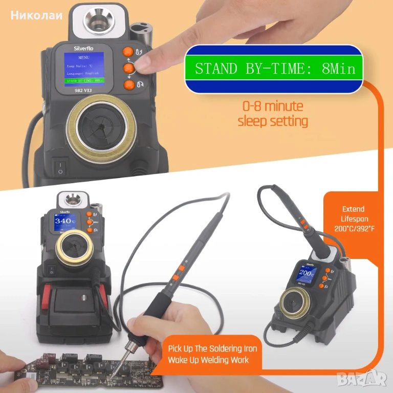 Температурен диапазон: Универсалният температурен диапазон от 90°C~450°C/194°F~842°F е подходящ за различни задачи за запояване, от деликатна електроника до здрави схеми.