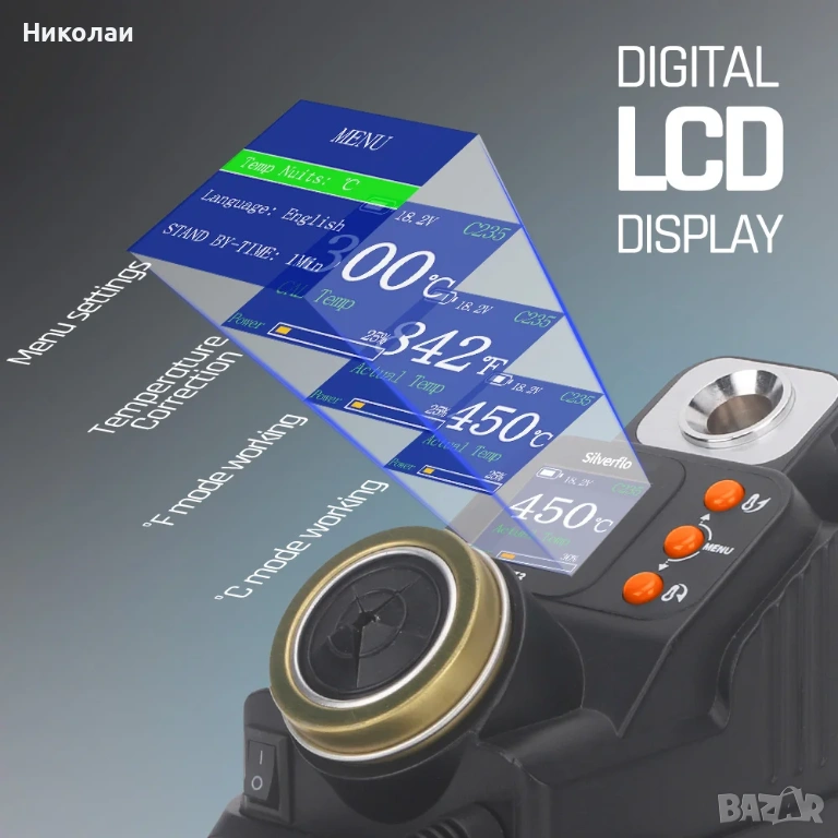 LCD дисплей: LCD екранът осигурява ясни показания на температурата в реално време за прецизно запояване и ефективна работа.