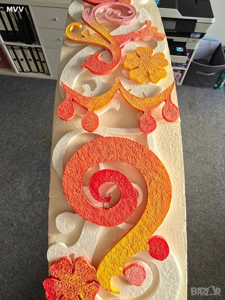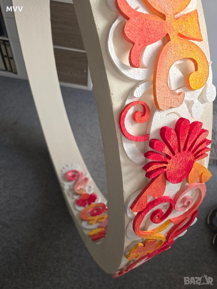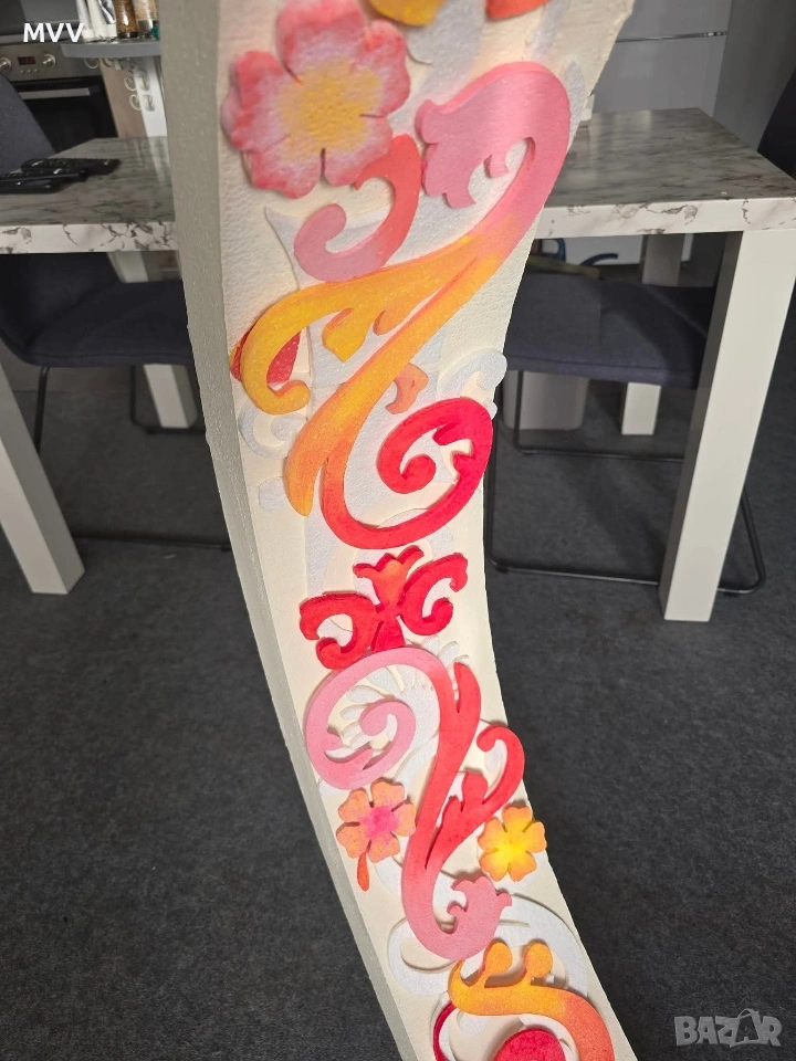 Декор от плътен стиропор с цветни флорални мотиви. Вътре може да седне не много тежък човек. Само лично предаване от цеха ни в с. Кичево 😊