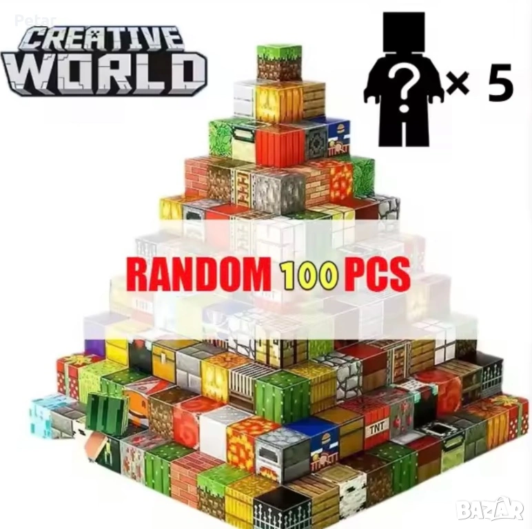 Магнитни Кубчета Майнкрафт 100 бр.+ 5 героя Magnetic Blocks Minecraft! Кубчетата са Нови, не са използвани!