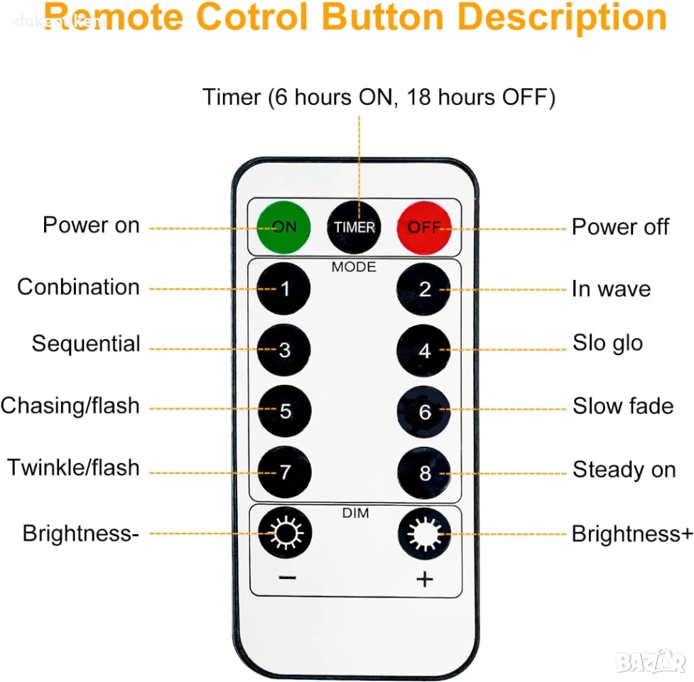 8 режима на светене – вълнообразно, премигване, плавна смяна, постоянна светлина и др.