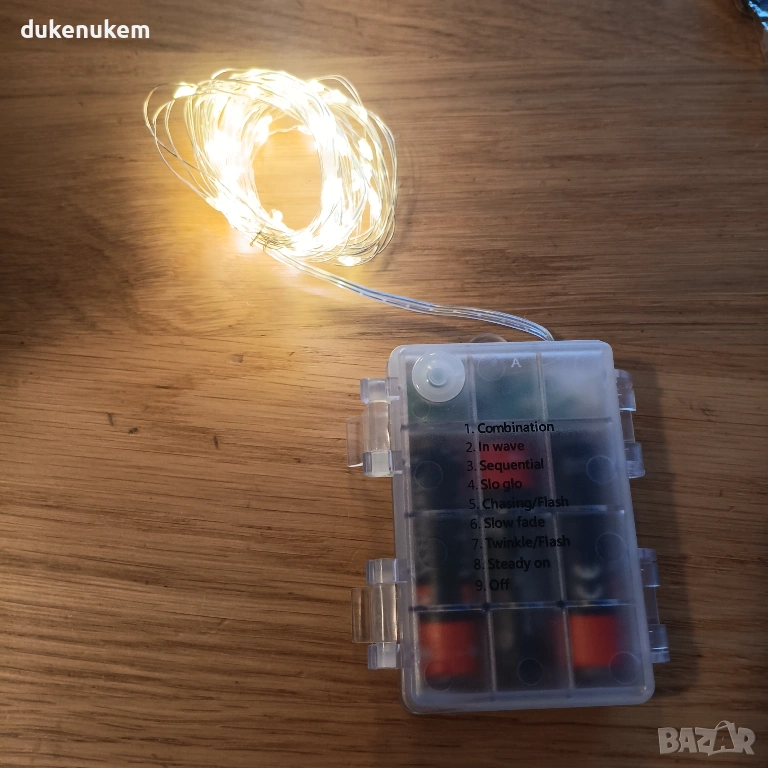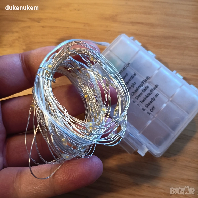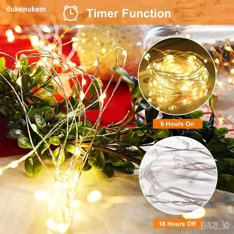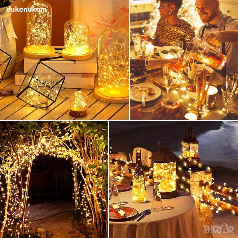 LED декоративни лампички на батерии – 5 бр. х 5 м, топло бяла светлина