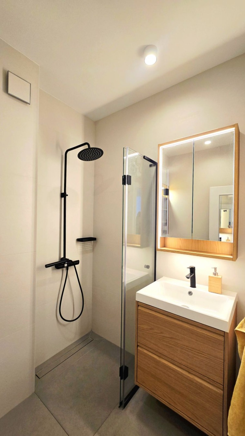 Интериорът е реализиран по индивидуален дизайнерски проект, с висококачествени материали, стилни детайли и усещане за изискан градски комфорт.