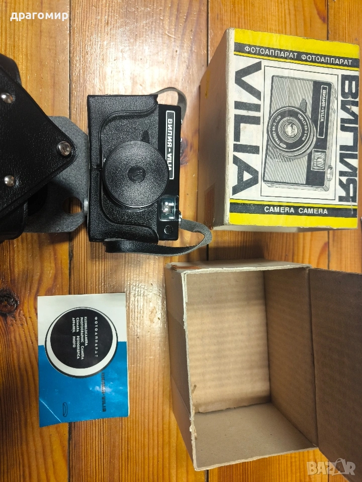 продавам чисто нов фотоапарат,ВИЛИЯ VILIA,в оригиналната си кутия, книжка за експлоатация, калъф, имам още много други фотоапарати, камери, обективи, чанти, светкавици, батерии, зарядни устройства, касети, филтри, ремъци, ленти, при закупуване на повече неща отстъпка
