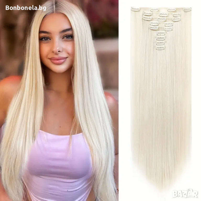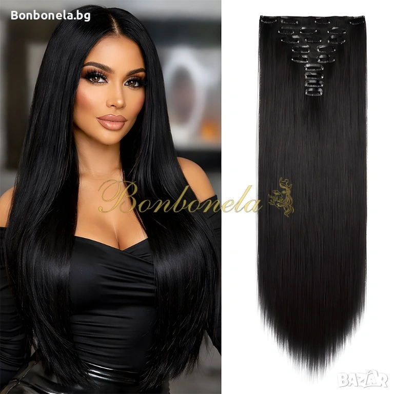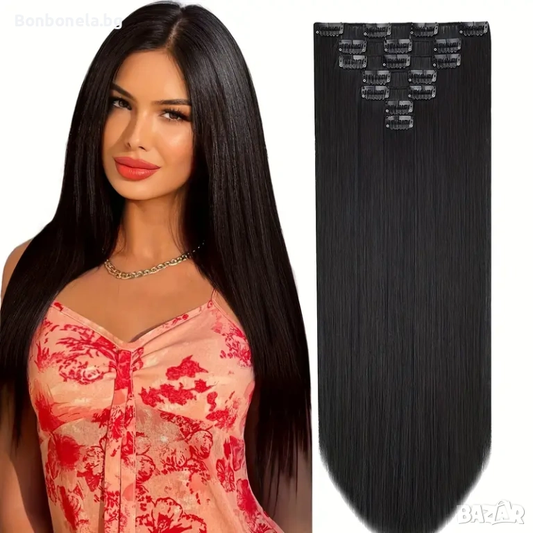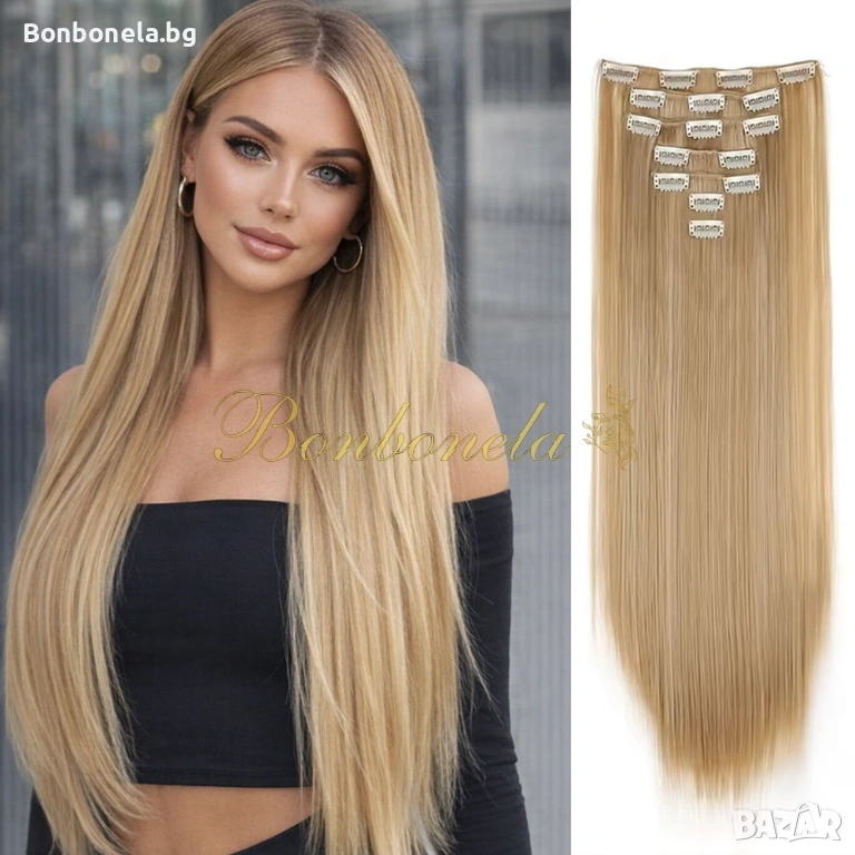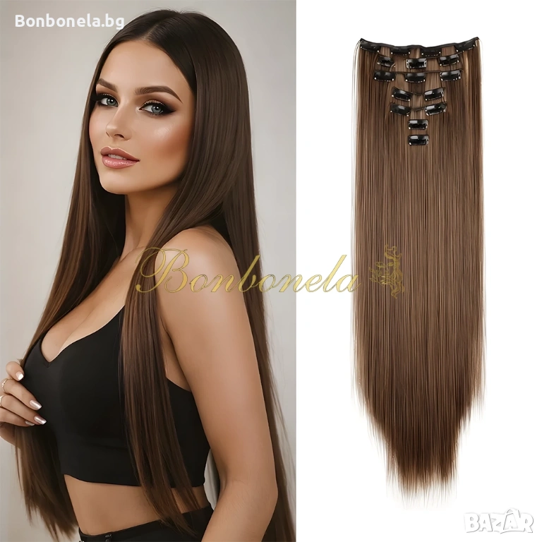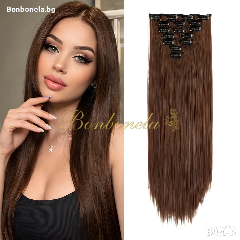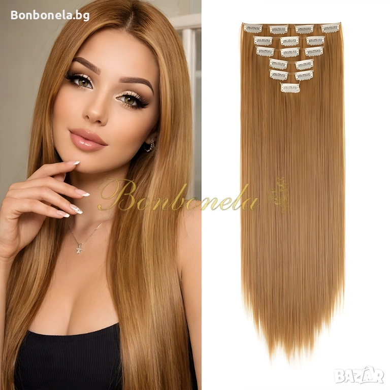 НОВИ! - Екстеншън с клипс / треса / 7броя треси с клипси / Удължение за Коса