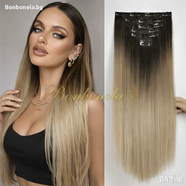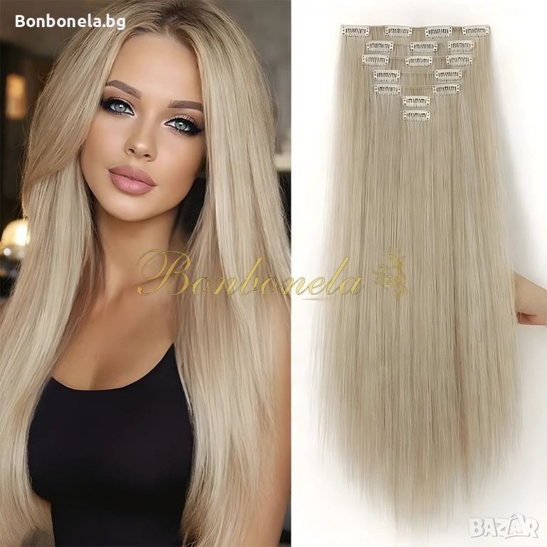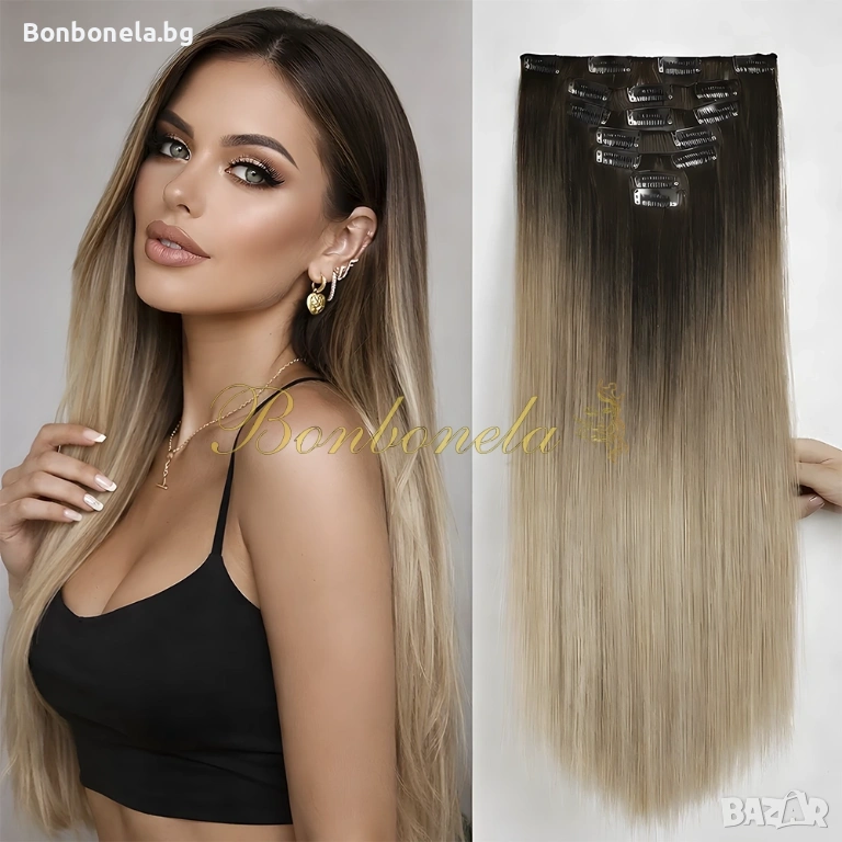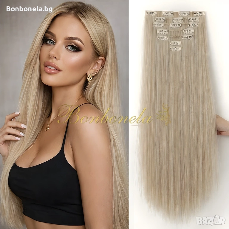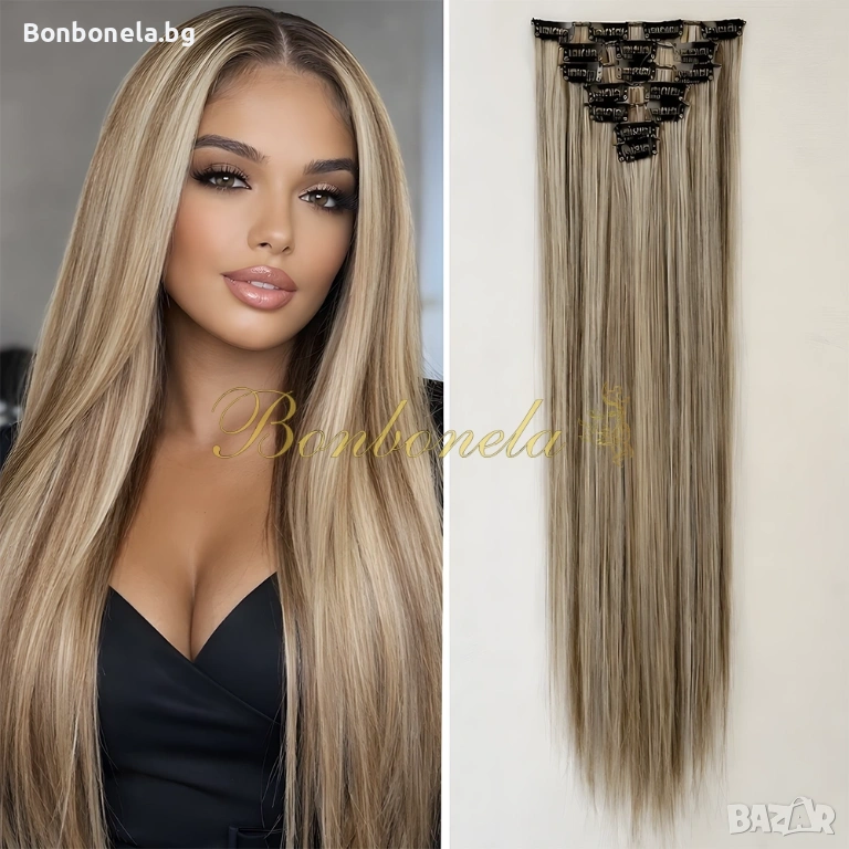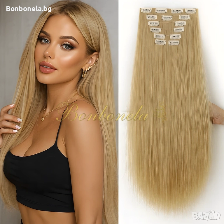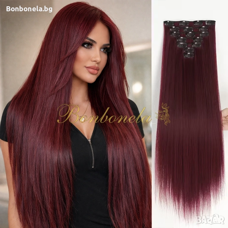 НОВИ! - Екстеншън с клипс / треса / 7броя треси с клипси / Удължение за Коса