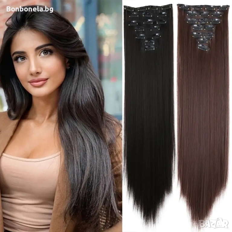 Екстеншън с клипс Удължение за Коса Различни цветове 7 реда треса