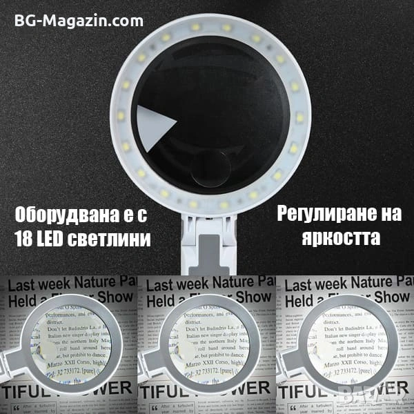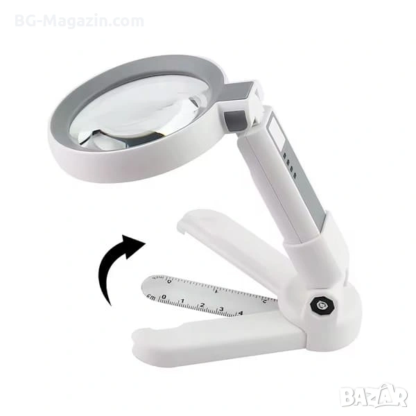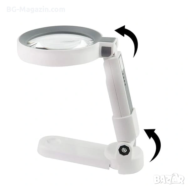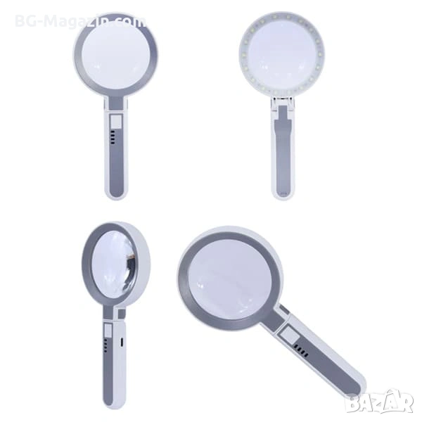 Акумулаторна ръчна увеличителна лупа LED с 18 диода, сензорно управление и две нива на увеличение