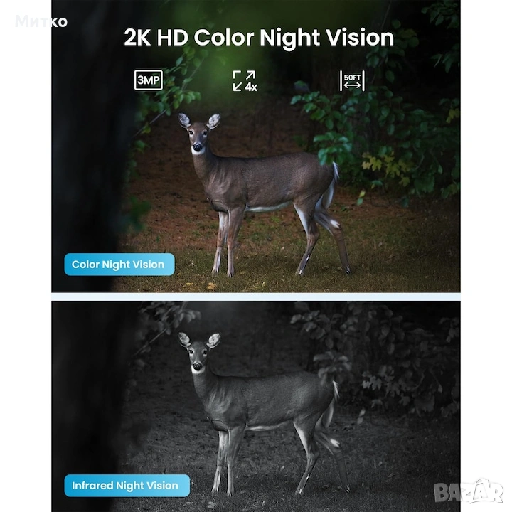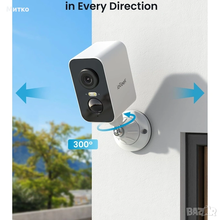 【Кристално чиста 2K резолюция с цветно нощно виждане】Виждайте всеки детайл, денем или нощем. 2K FHD резолюция, вграден прожектор и цветно нощно виждане осигуряват ясни и реалистични изображения. С панорамиране на 300° и накланяне на 90° ще покриете всеки ъгъл без мъртви зони.