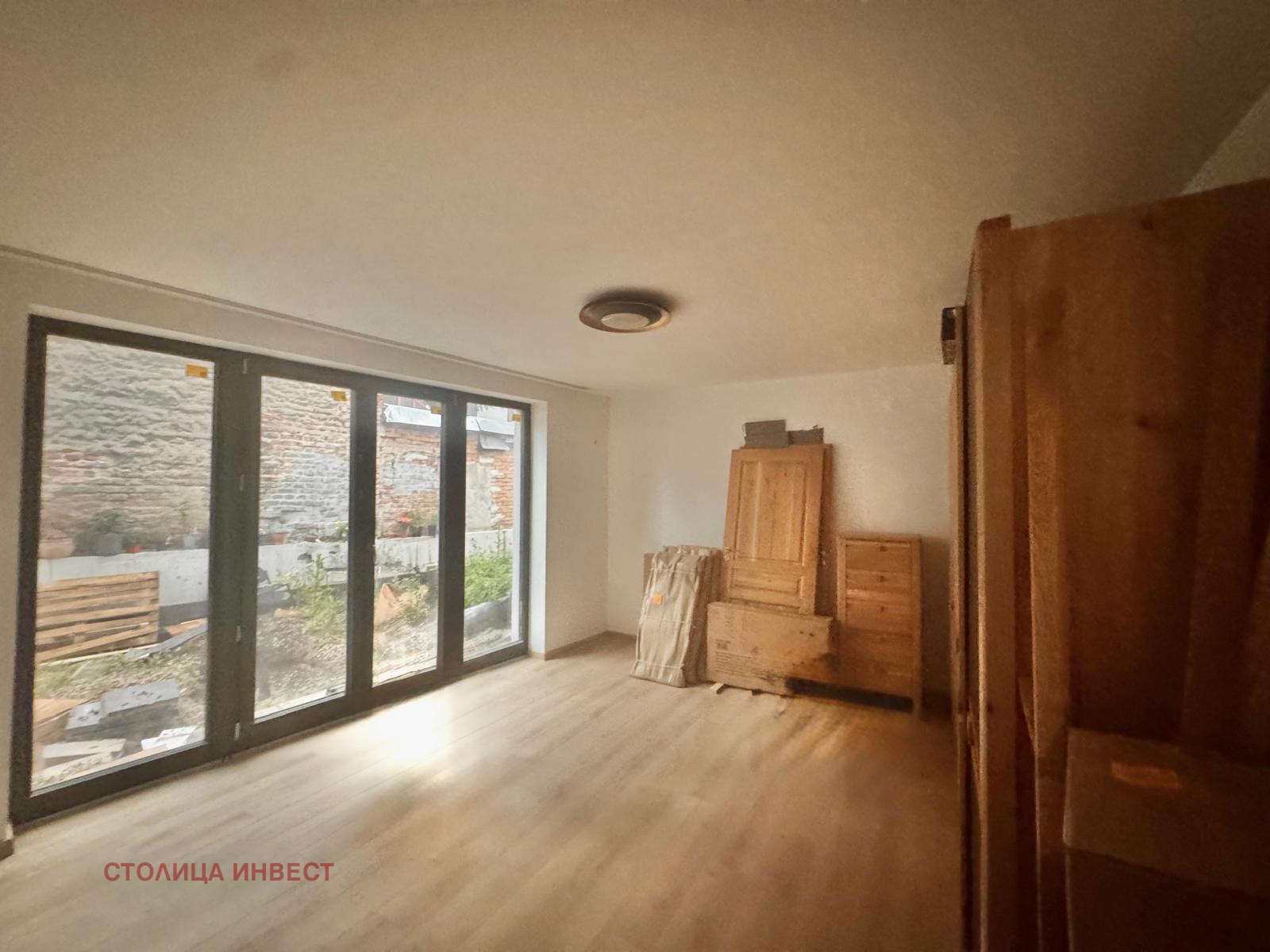 Агенция Столица Инвест предлага на Вашето внимание ЕКСКЛУЗИВНО 3- стаен апартамент в нова тухлена сграда със собствен прилежащ двор в Идеален Център на град Русе. Имотът е с реална площ от 90 м2, и е ситуиран на партерен етаж от общо 5-етажна сграда. Към апартамента има и собствен двор с площ 62 кв. м., който може да се превърне в градина с барбекю зона. Апартаментът се състои от коридор, голяма дневна с кухня и трапезария и две големи, просторни спални, като от всички стаи има излаз към двора. Имота в момента се довършва и се предлага напълно завършен с висококачествени материали. Интериорни врати са от естествено дърво, подови настилки от гранитогрес и висококачествен ламинат. Отопление на термопомпа, предвидено подово отопление. Контролиран достъп, видео наблюдение. Към жилището има и прилежаща маза. Локацията на имота е отлична, в близост до Градски Хали, магазини, аптека и пешеходна зона, придунавски булевард и пр. Има възможност за закупуване на гараж. Сградата е луксозна въведена в експлоатация 2025г.