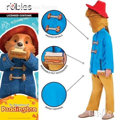 Нов Официален Paddington детски костюм Deluxe с шапка и аксесоари 5/6г