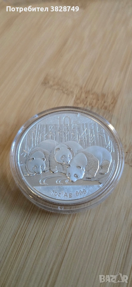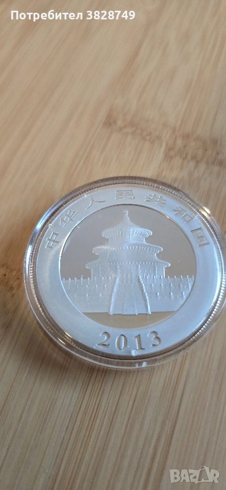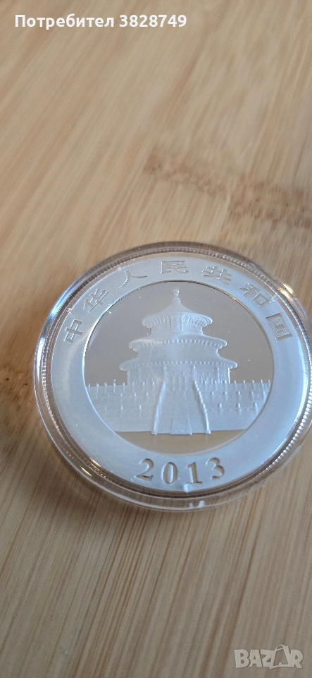 1 сребърна унция Китайска Панда 2013г, не е вадена от капсулата, без петна и отпечатъци. Имам панди и от други години.