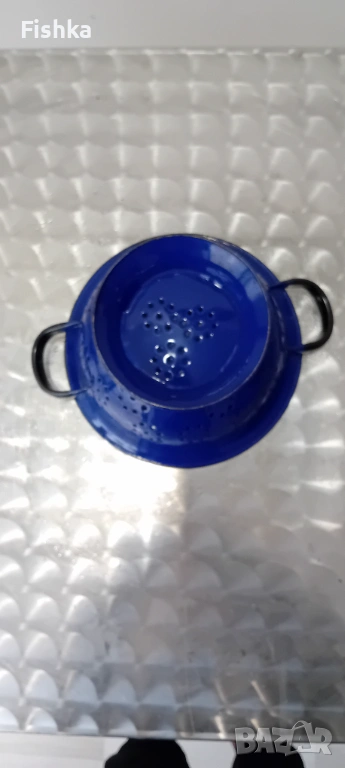 Немски метален емайлиран гевгир – 21 см, кралско синьо → Обява 53032877