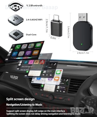Нов Безжичен Apple CarPlay адаптер WiFi Bluetooth Plug & Play кола автомобил