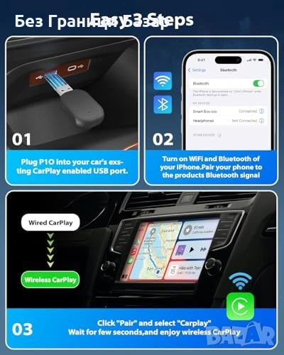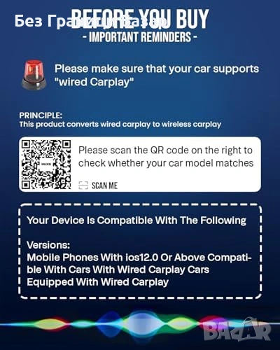 Съвместим с автомобили с фабричен wired CarPlay (след 2016 г.)