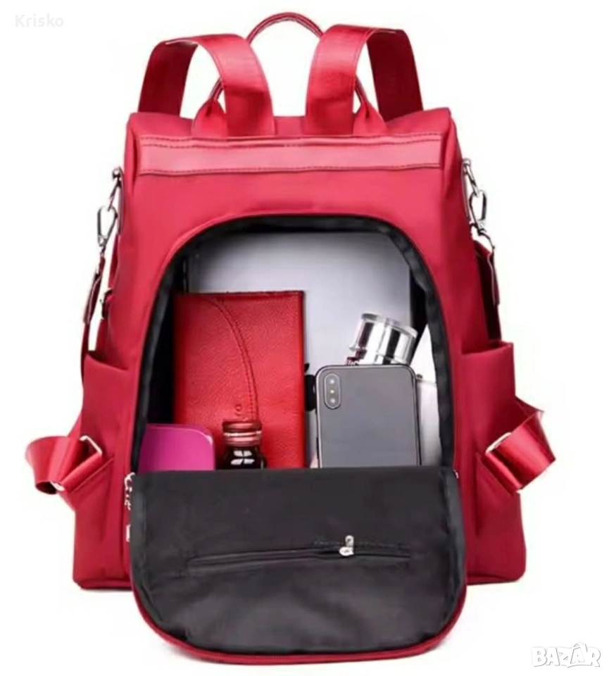 Модерна червена раница с компактен размер – 32×13×33 см → Обява 53033240