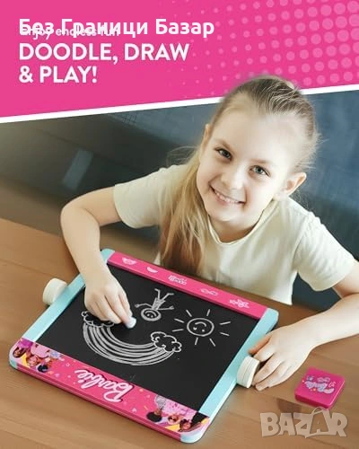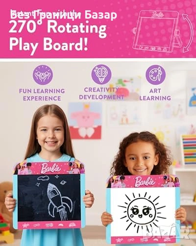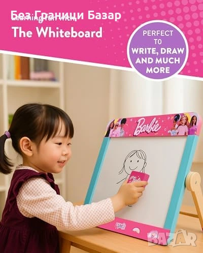 Нова Барби Детска дървена дъска Barbie статив с маркер и тебешири за деца