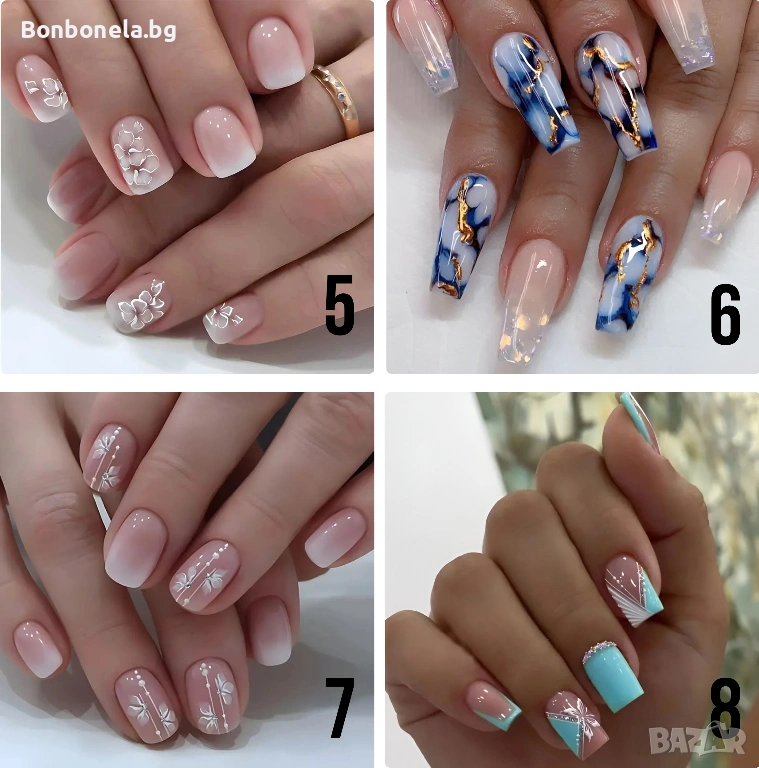 Самозалепващи изкуствени нокти Press On Nails - 24бр.+лепило в комплект