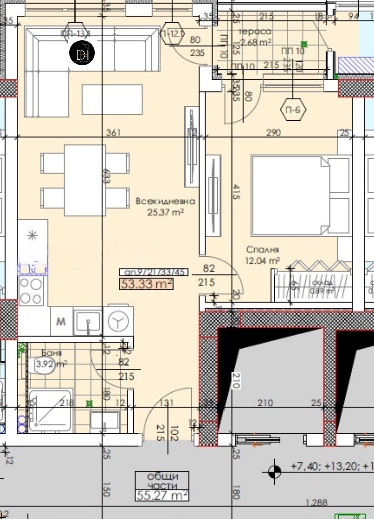 ➤ дневна с кухненски бокс и трапезария