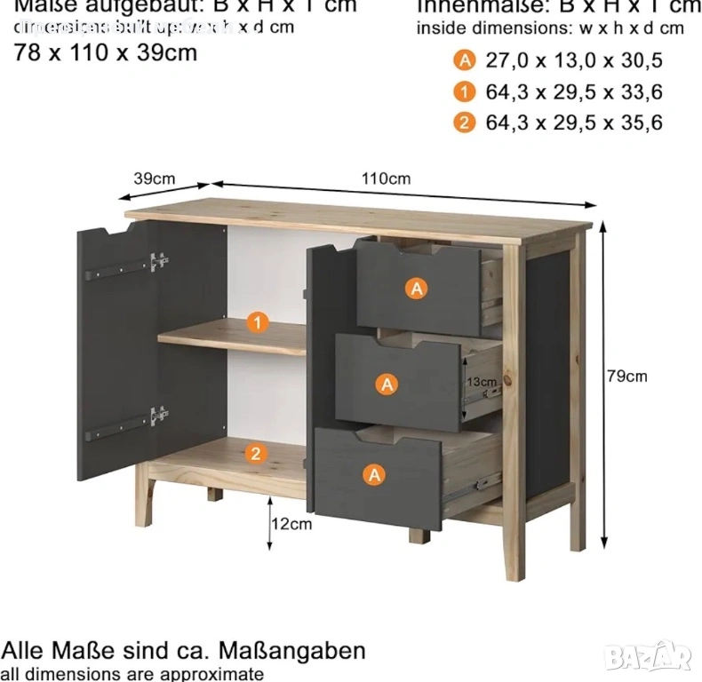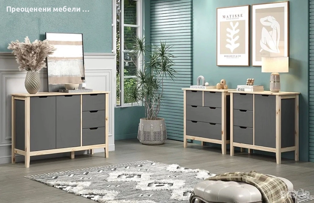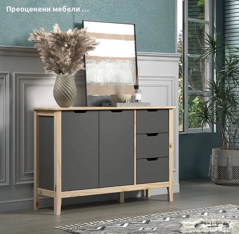 Подробни размери на една от снимките Изработено от масив бор натурален и сиво боядисан бор