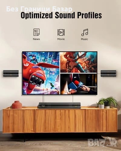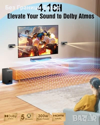 Нов 4.1 Dolby Atmos Саундбар 300W с 5.25" Субуфер и Съраунд Звук Колони
