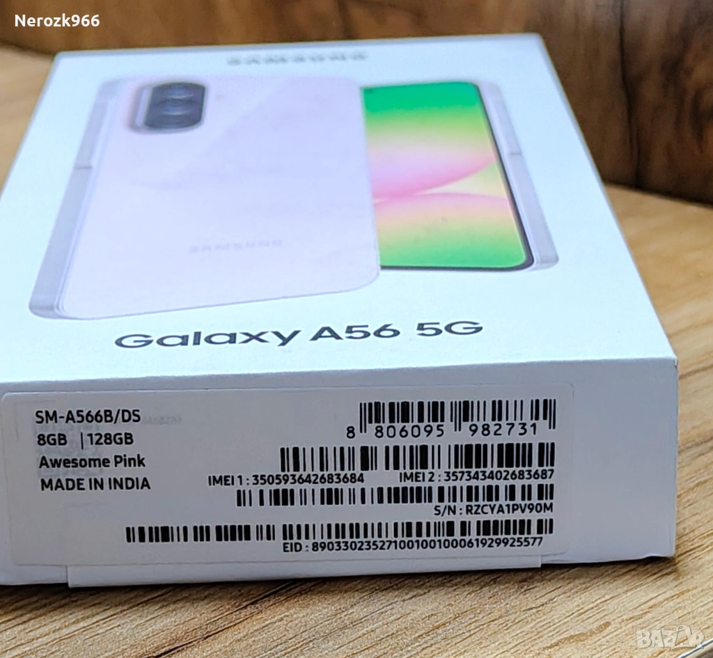 Samsung A56 - 128 GB /8 Ram Розов В перфектно състояние,неразличим от нов,ползван е около месец има 36 месеца гаранция