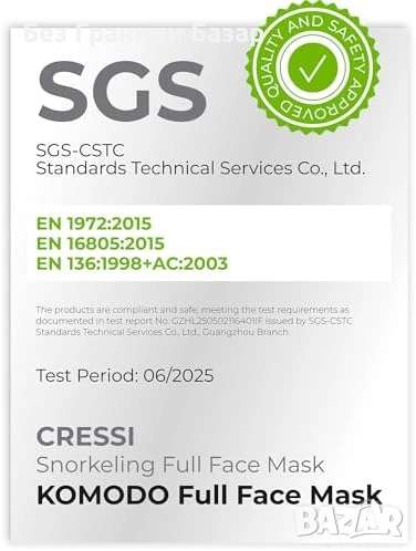 Нова CRESSI Пълнолицева шнорхелинг маска 180° сух шнорхел антифог за море