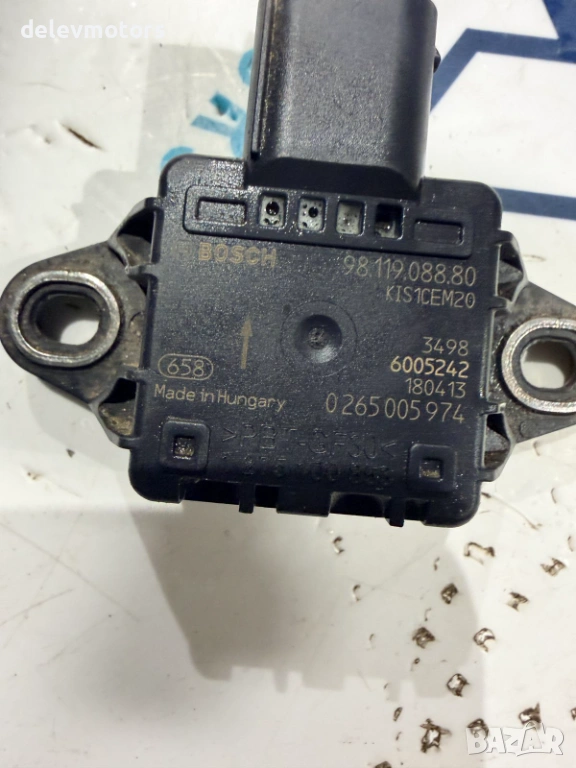 9811908880 сензор за ESP, датчик от Peugeot Partner 1.6 BlueHDi, 100 ph., 5 sp., engine BHY, 40 000 km, 2017, euro 6B, Пежо Партнер 1.6 HDI, 100 кс., 5 скорости, двигател BHY, 40 000 км, 2018 г., евро 6Б в автоморга Delev Motors, между с. Каменар и с. Куманово гр. Варна.