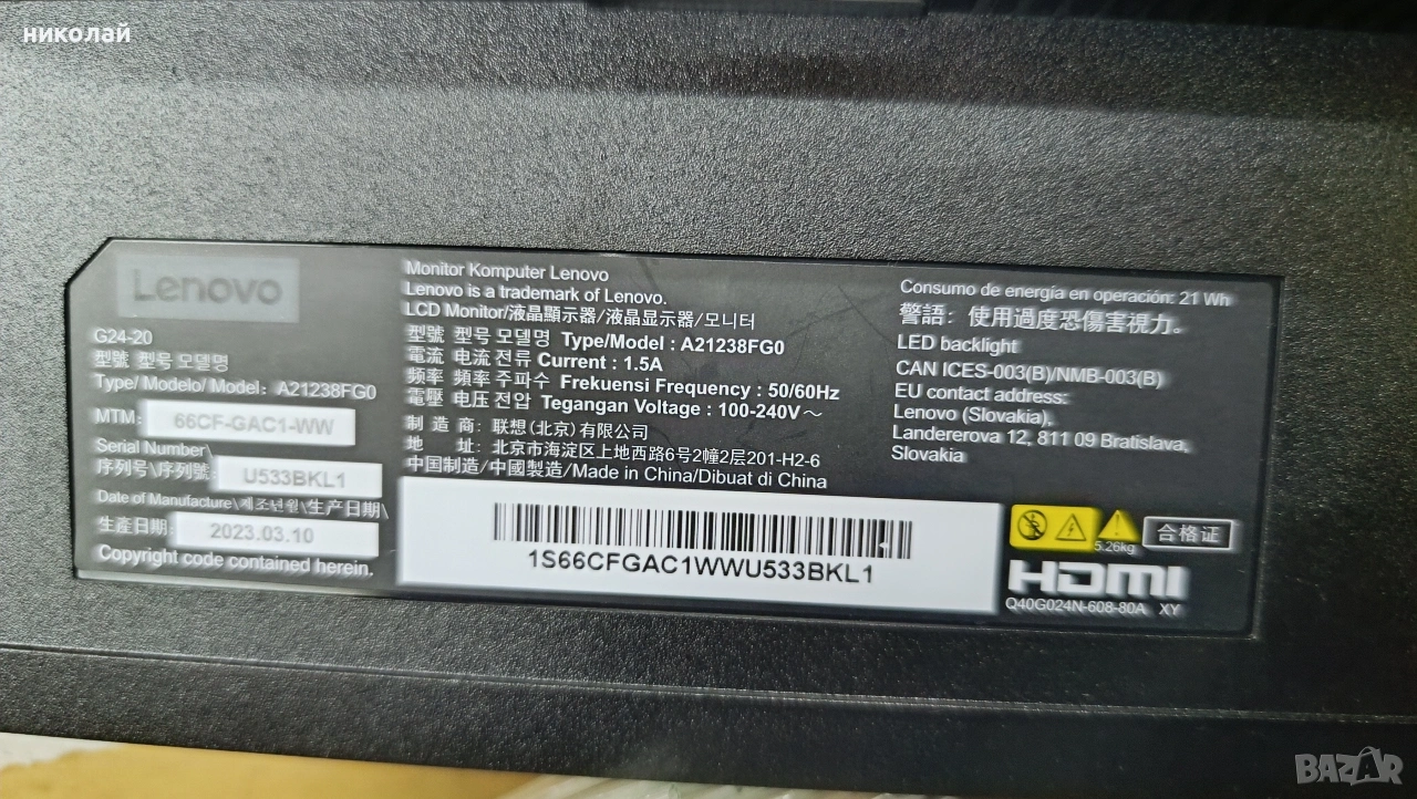 Монитор Леново A21238FG0 за части → Обява 53034507