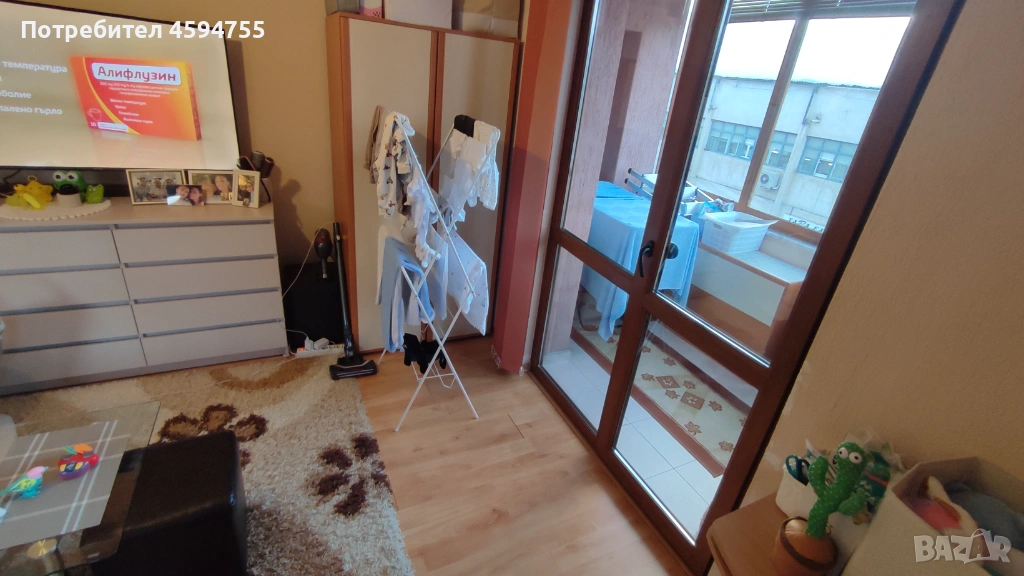 Апартамента е с френски прозорци в хола, вънщни щори и остъклена тераса. Отоплението и охлаждането е с климатик.