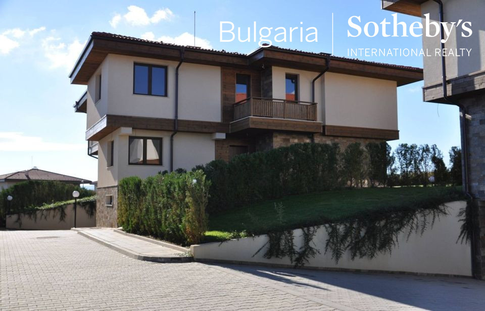 BULGARIA SOTHEBY’S INTERNATIONAL REALTY представя на вашето внимание нова, обзаведена къща в комплекс от затворен тип със собствен озеленен двор.
