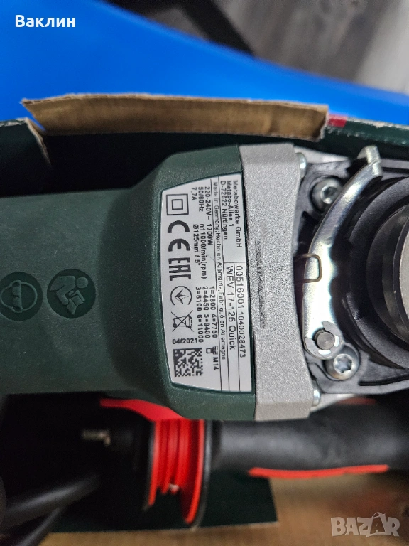 Електрически ъглошлайф Metabo 1700 W, 125 мм