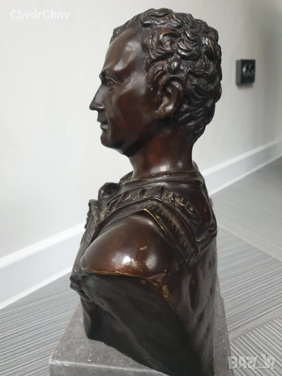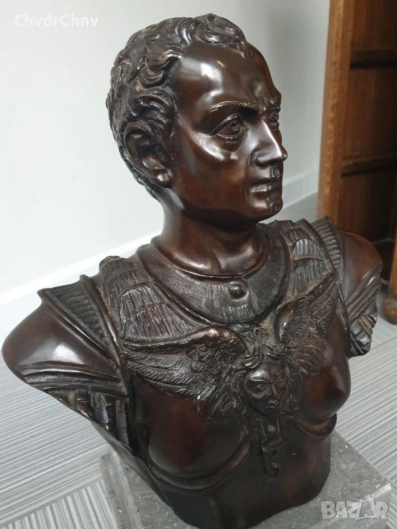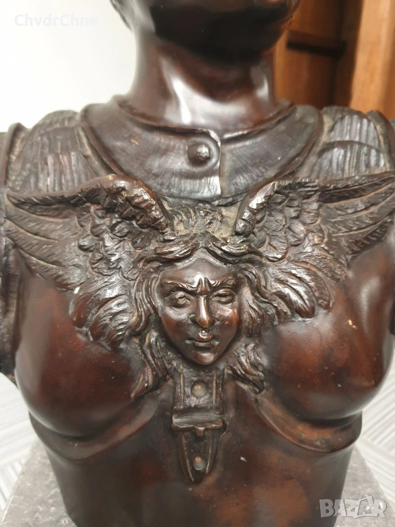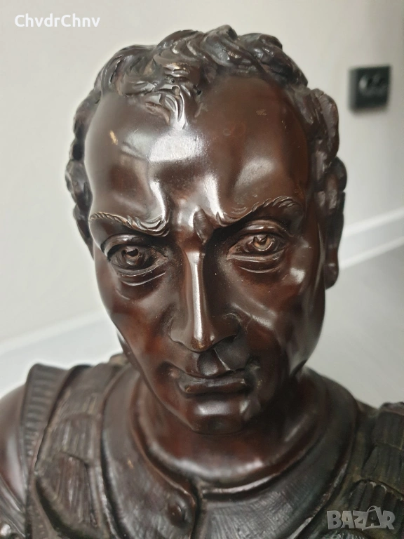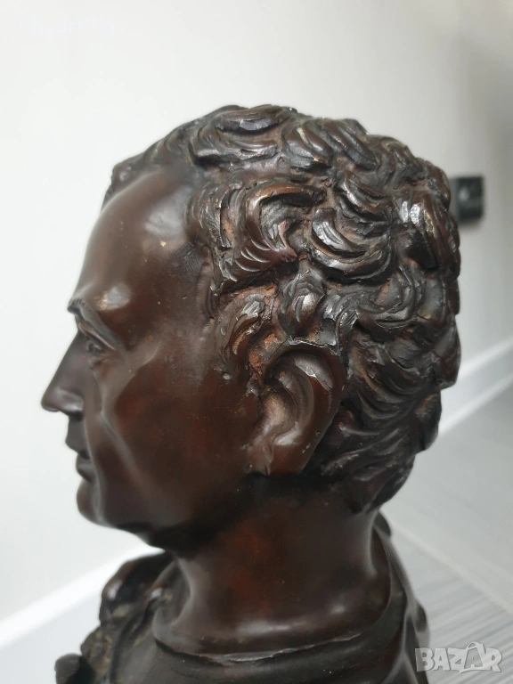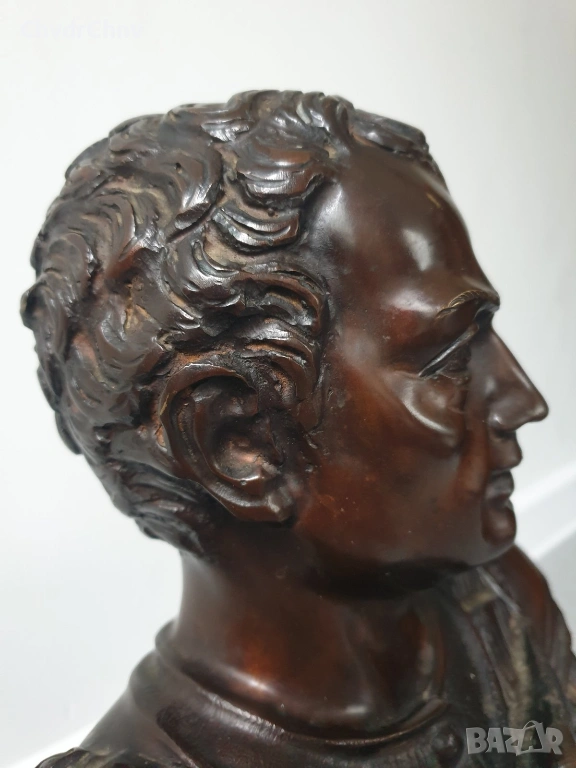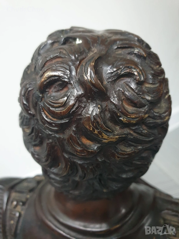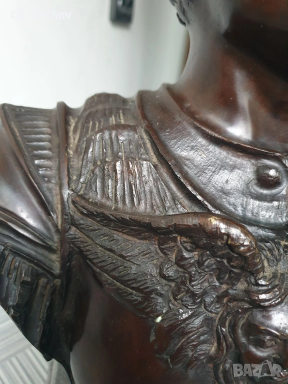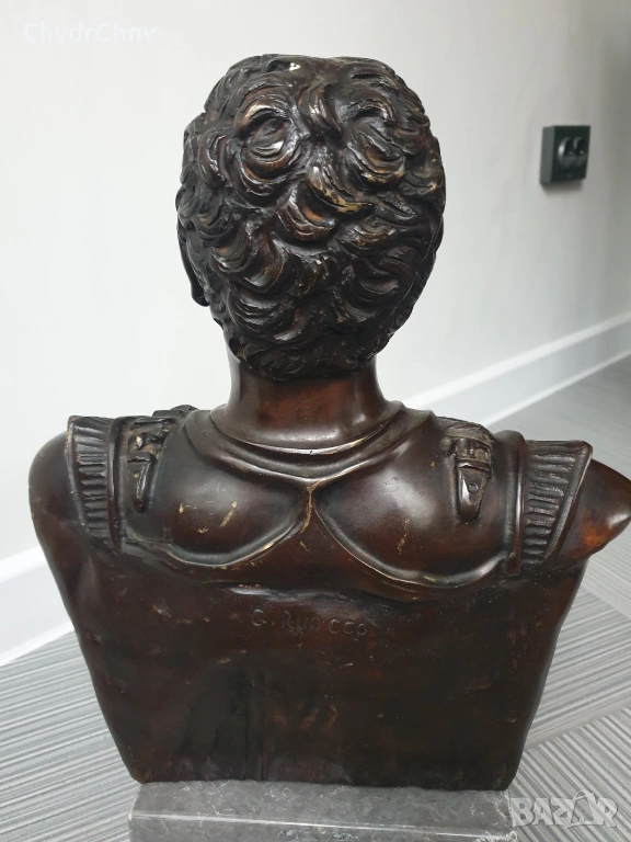 Мраморната основа (последната снимка) не е оригиналната и може да се смени. Закрепването е чрез бронзова шина с резба (заварена към фигурата). В мрамора е монтиран/залепен болт за който се завива шината/бюста.