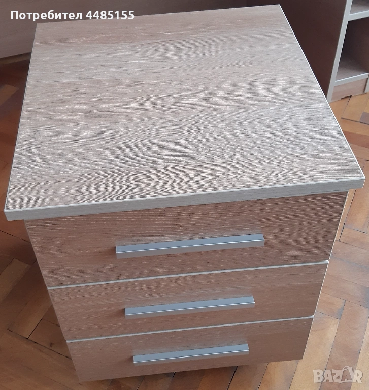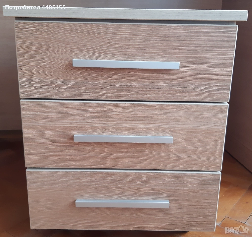 Шкафчето е с три чекмеджета на релси за всички работни принадлежности и канцеларски материали. Чекмеджетата се отварят и затварят с един пръст. Има четири колелца, с които се премества лесно при необходимост и при почистване на пода.