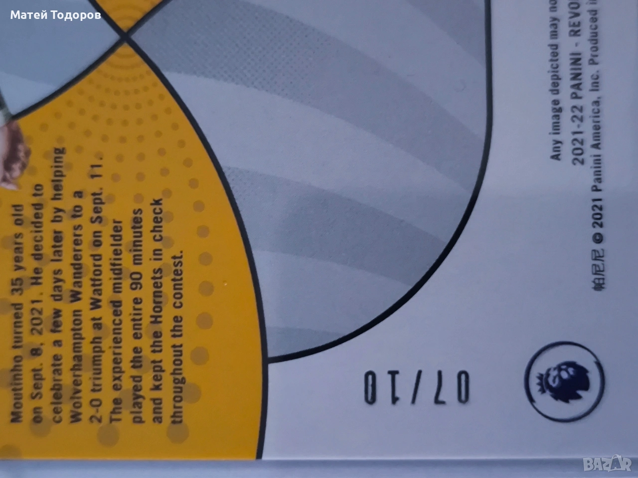 Продавам футболна карта на бившият играч на Улвърхямптън и Португалия лимитирана до 10 броя