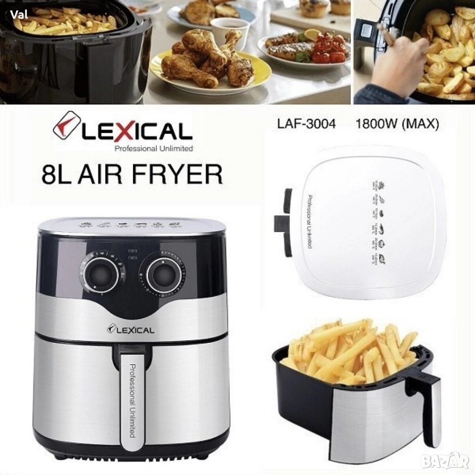 Фритюрник с горещ въздух Lexical Airfryer LAF-3004 , 8L, 1800W, инокс → Обява 53036217